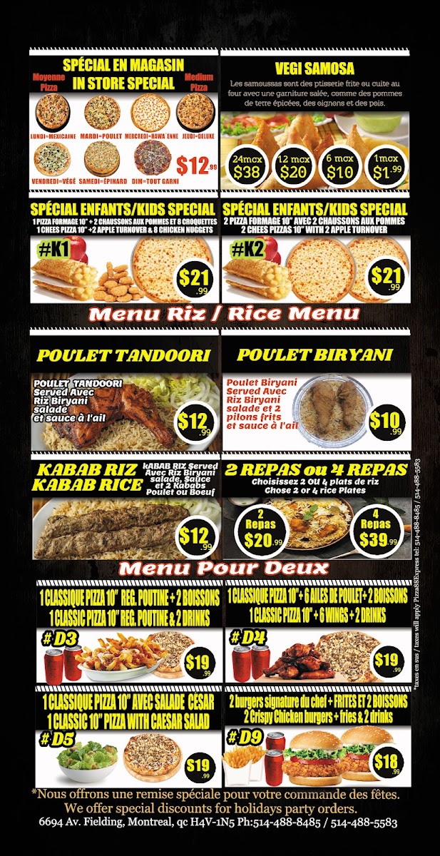 Located in the heart of Montreal, Pizza 88 Express et Siddiquis offers a delightful culinary experience for Halal food enthusiasts. The menu features a variety of flavorful pizzas, including unique topping combinations like Chicken Tikka and Chicken Tandoori, all generously adorned with cheese and fresh ingredients. Customers rave about the richness of flavors, with options that cater to large gatherings—perfect for groups of four to five.